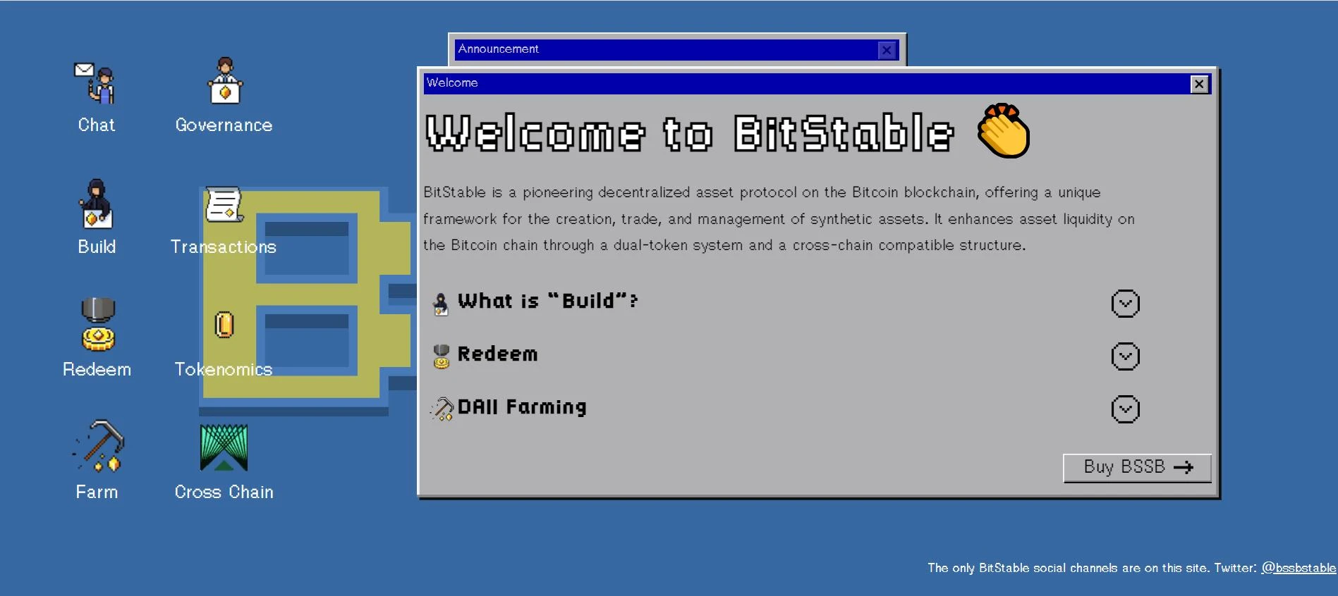 BitStable 是一个基于比特币网络的去中心化资产协议,它允许用户在全球范围内生成与比特币生态系统相关的抵押资产$DAII 稳定币。这个平台采用双代币系统,主要包括$DAII 和$BSSB 两种代币,同时支持跨链操作,增强了与其他区块链网络的兼容性。