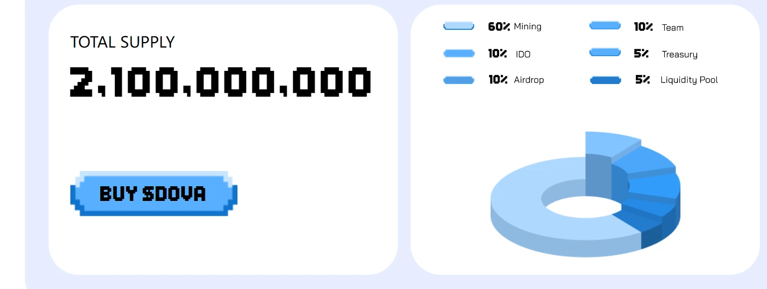 Dova 代币总供应量 2, 100, 000, 000 枚,当前市值$ 55.56 M。