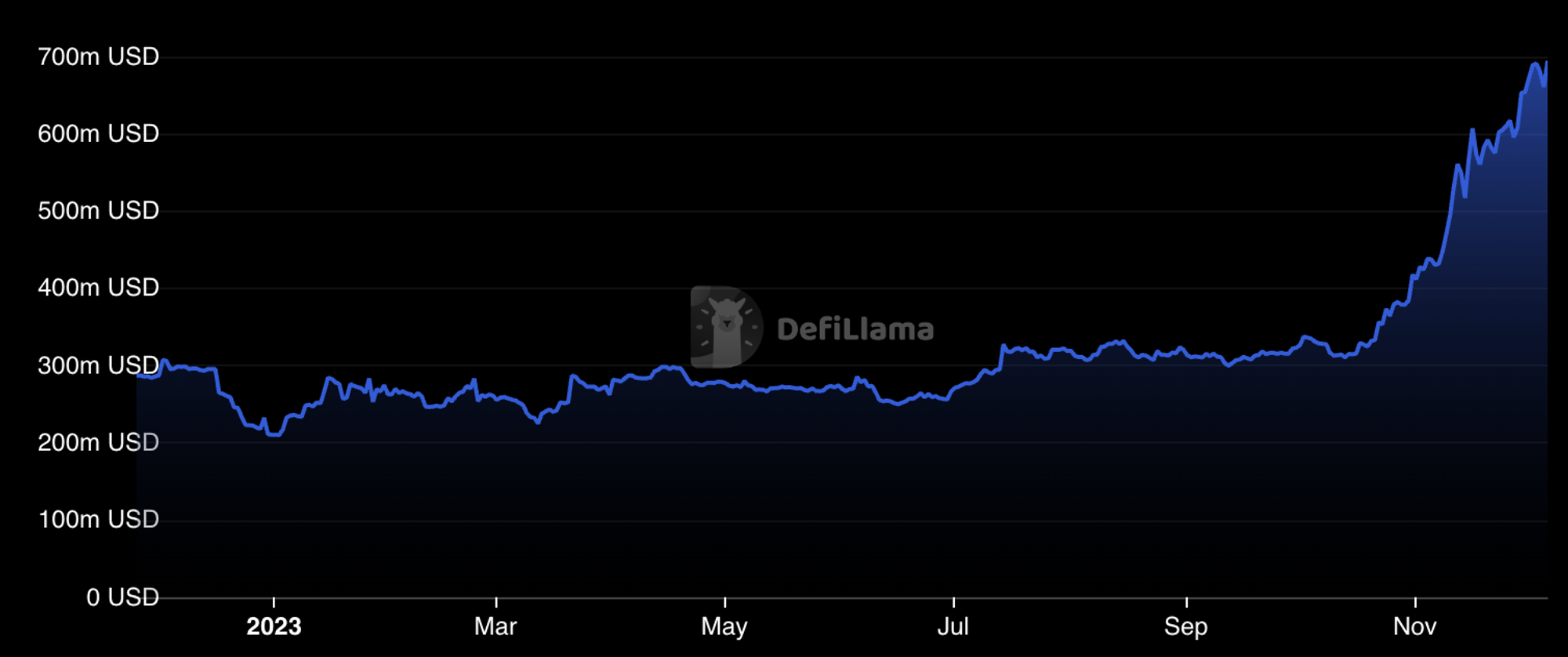 除了 TVL 大幅上涨外,Solana 上的每日交易数量也达到了接近 400M 的峰值。交易数量的攀升既能带动 Solana 网络费用的增长,也会促进 MEV 费用的提升,这都会带动以 Jito 为代表的质押需求。
