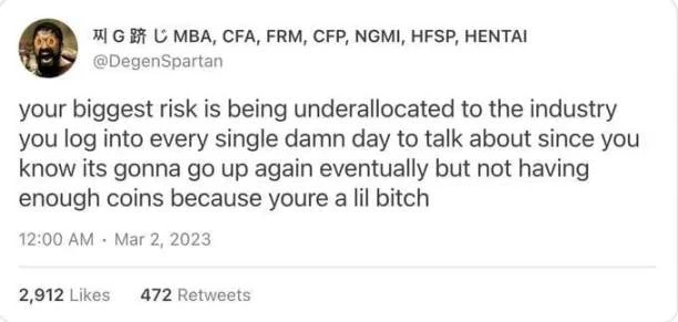2023 年我学到的最大风险是,在知道未来某时某刻会再次出现价格的上涨时,我的仓位太低。