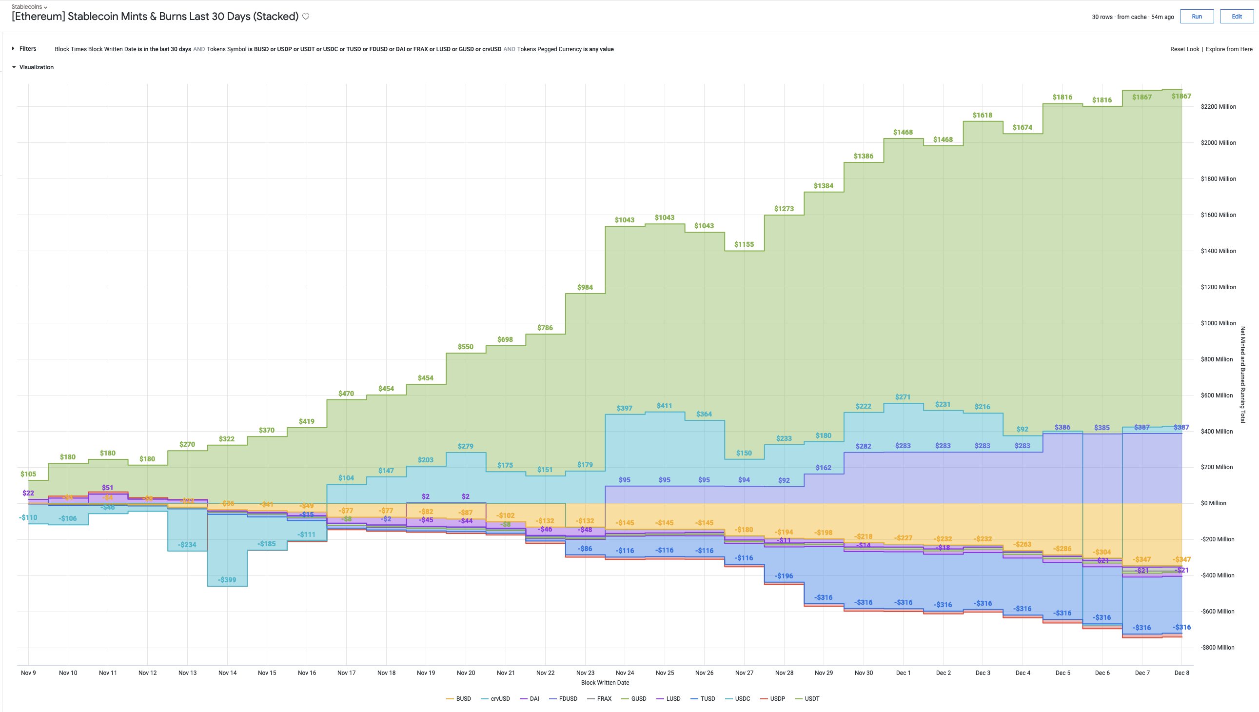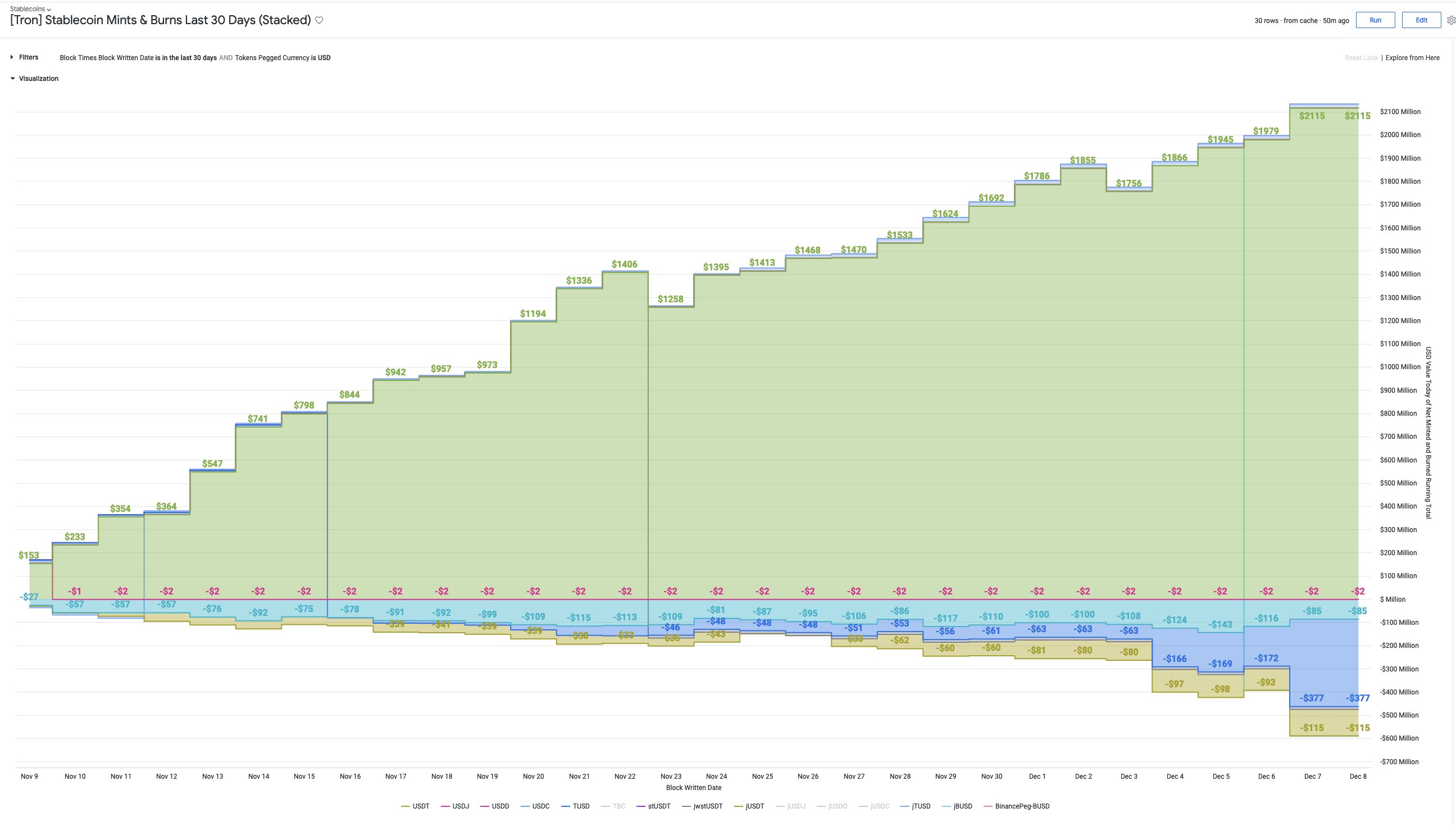 12月以太坊和波场链USDT代币发行净额达到39.8亿美元