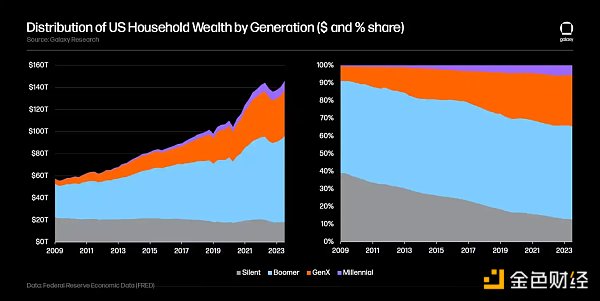 Galaxy Digital 研究员 Charles Yu 通过对美国财富的转移情况进行深入分析,聚焦于婴儿潮一代向千禧一代的大规模财富传承。从传统的金融体系转向加密货币,不仅仅反映了千禧一代与年长一代在投资行为和价值观上的分歧,也为加密货币市场带来了新的机遇和挑战。文章深入解读了年轻一代对加密货币的偏好,以及这一趋势可能对市场产生的深远影响。