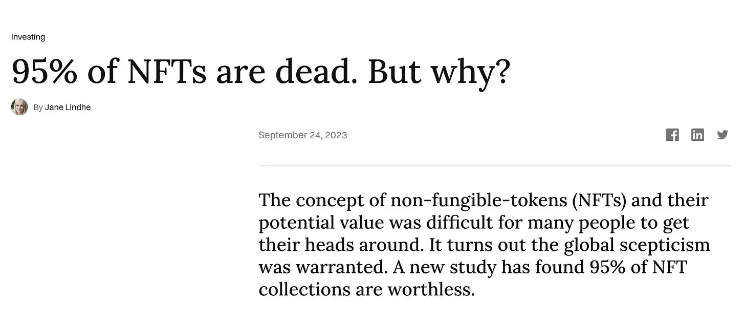 NFT 的衰退是不可否认的:在这段时间里,NFT 高调销售减少,市场饱和(部署了无数新的 NFT 项目)导致了消费者疲劳。