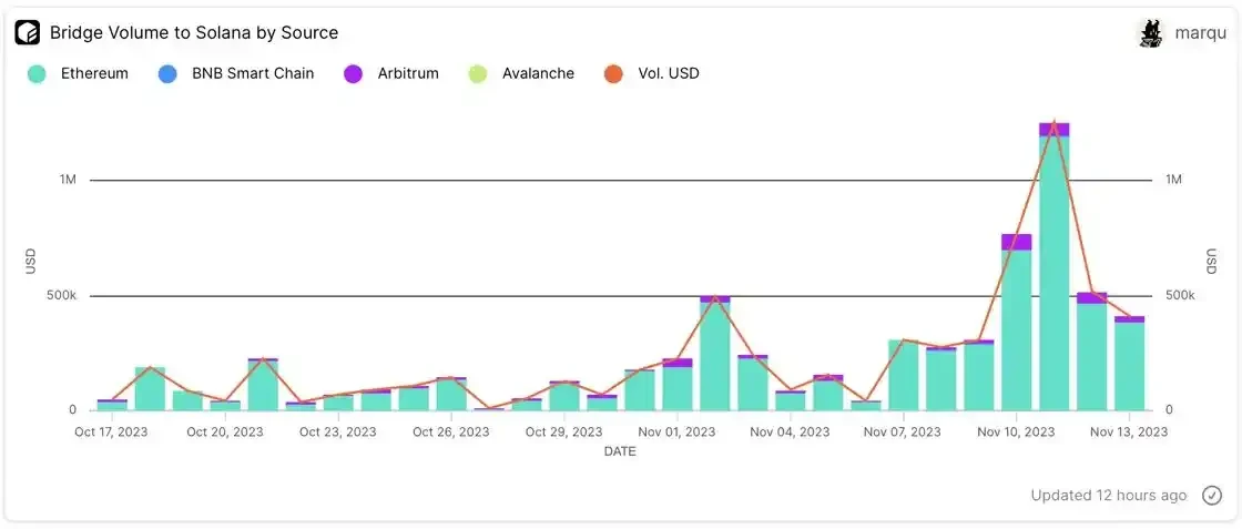 到 Solana 的交易量有所增加。