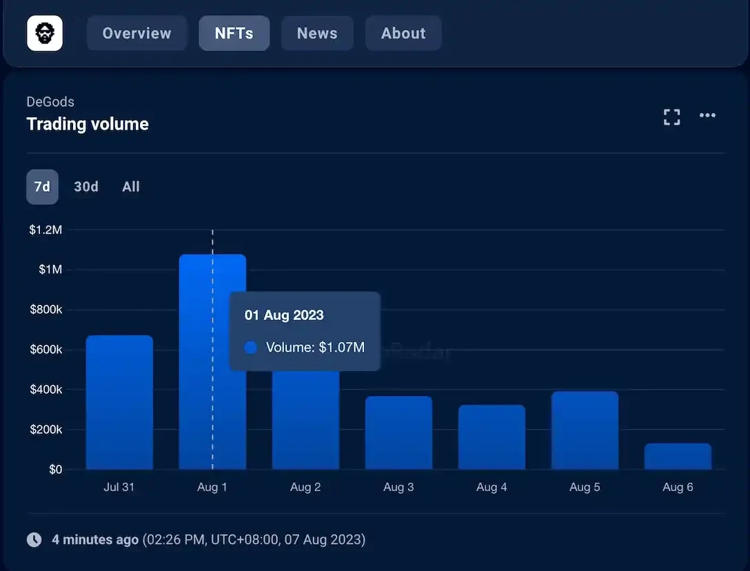 第三季备受期待,推动了 DeGods 的成交量创下新高。