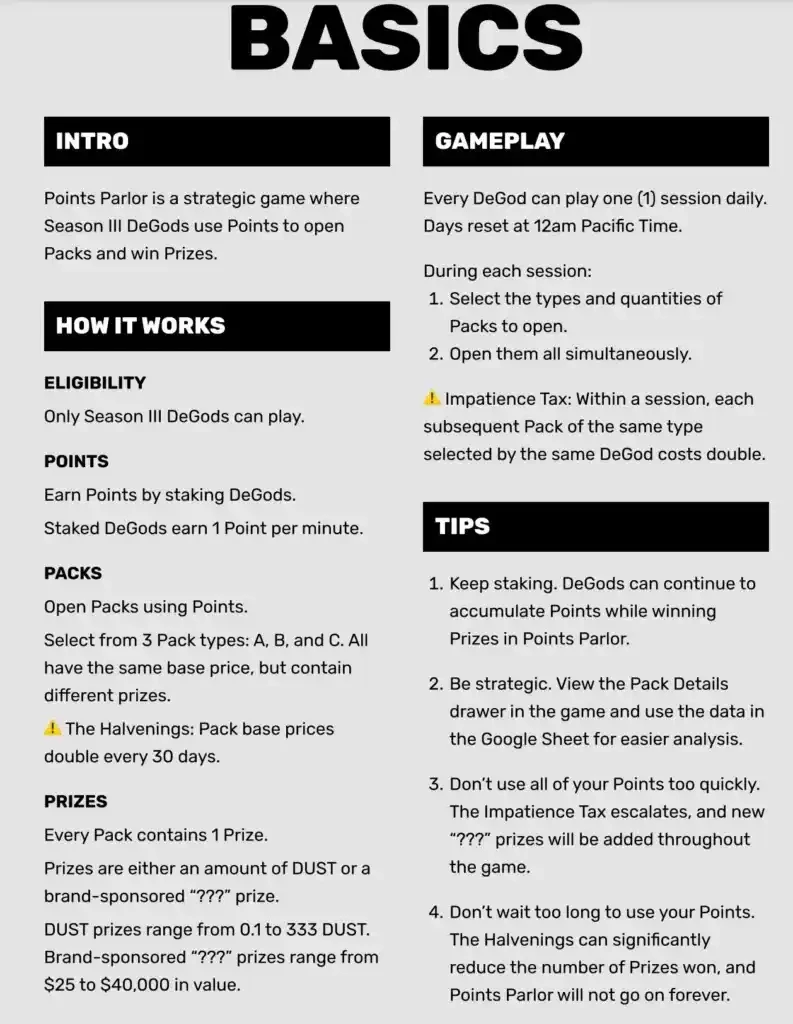 他们还推出了一个「Point Parlor」,用户可以在那里抵押他们的第三季 DeGods 以获得积分并赢得奖励和奖品。