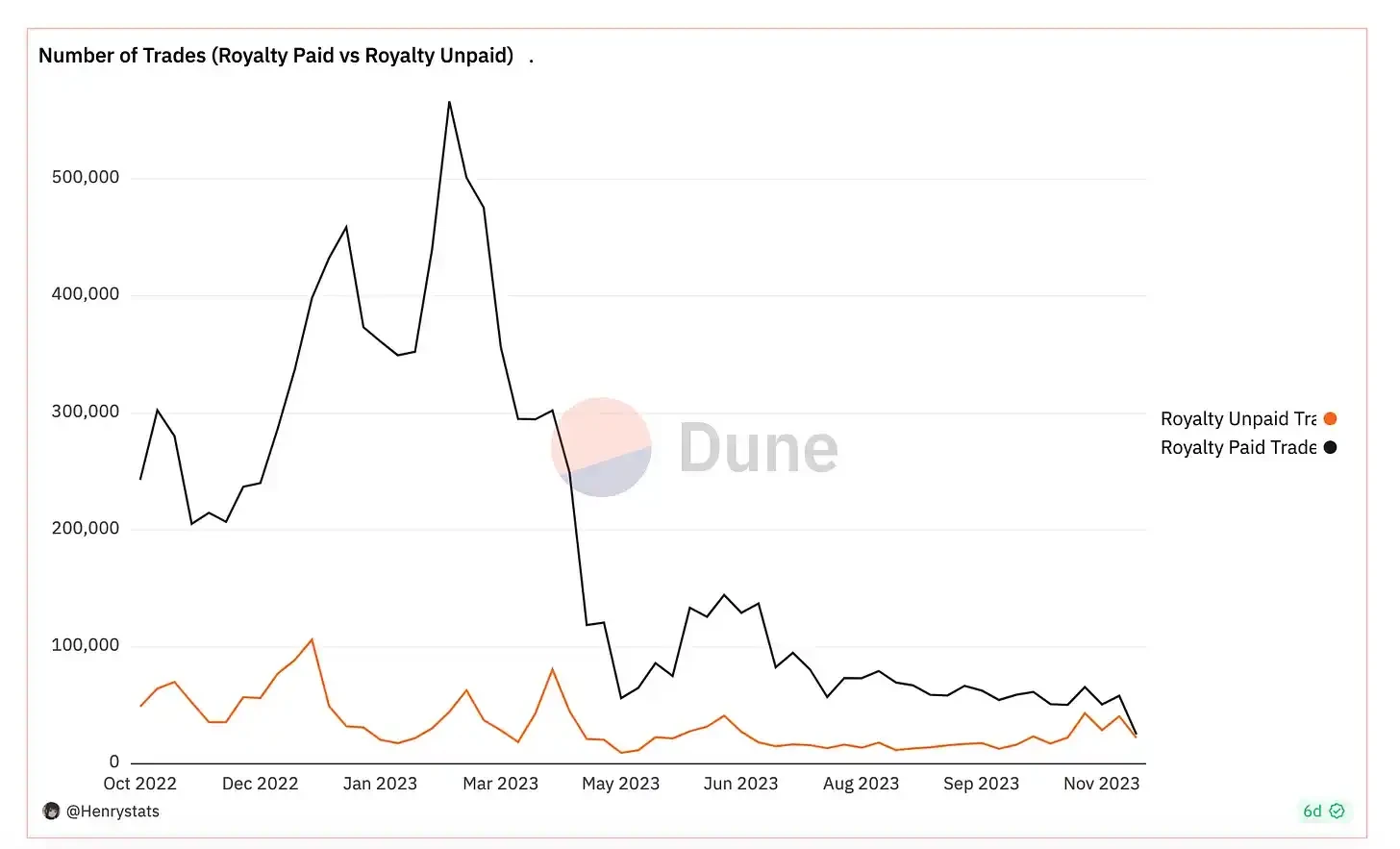 目前,只有略超过 45% 的总 NFT 交易支付了版税。