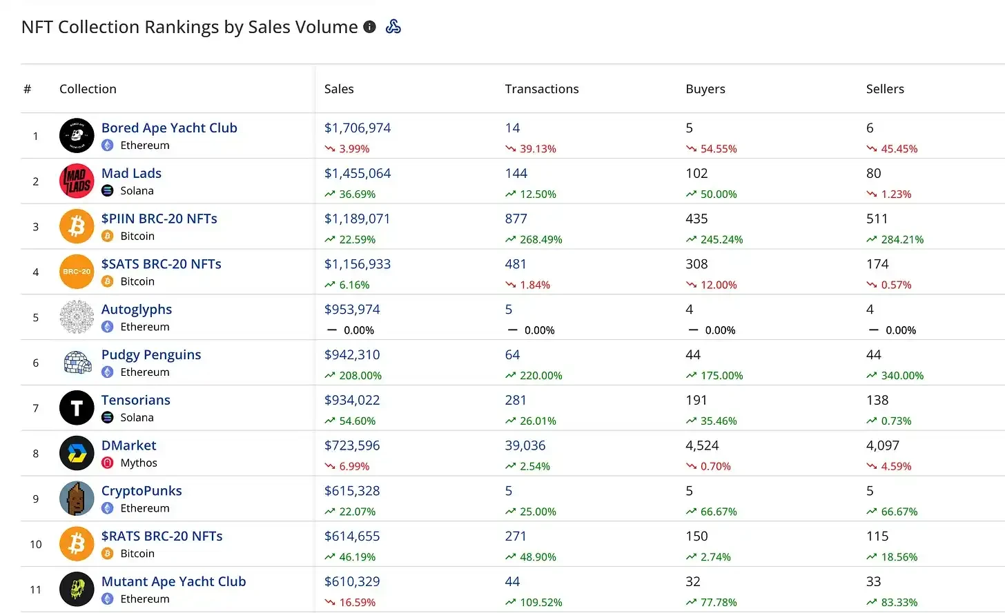 以下是按销售量排名的 NFT 收藏品的前 11 名(surviv 000 rs):