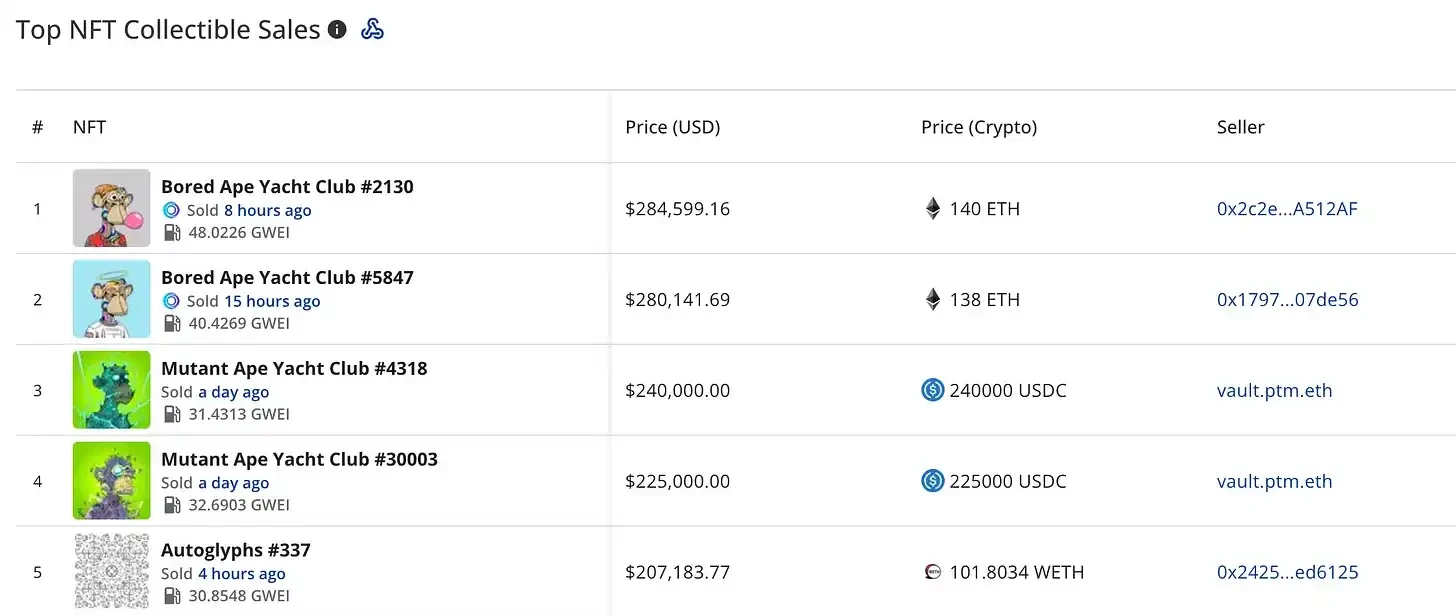以下是上周的顶级 NFT 销售:
