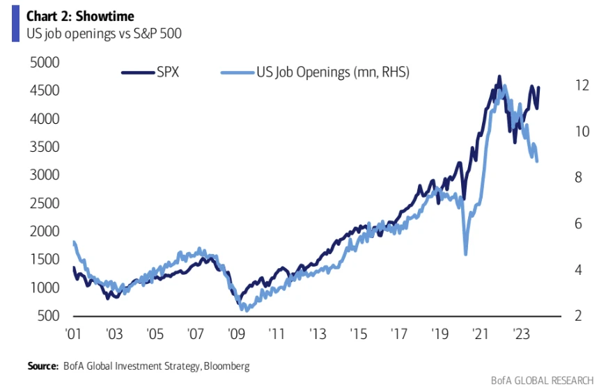 股市上涨,职位空缺数下降,如今这样的情形在历史上并不多见:
