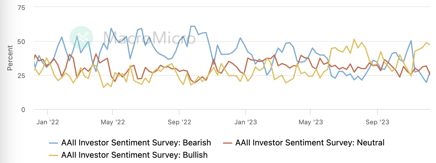 AAII 投资者调查看多情绪略有下降,看空情绪略有上升: