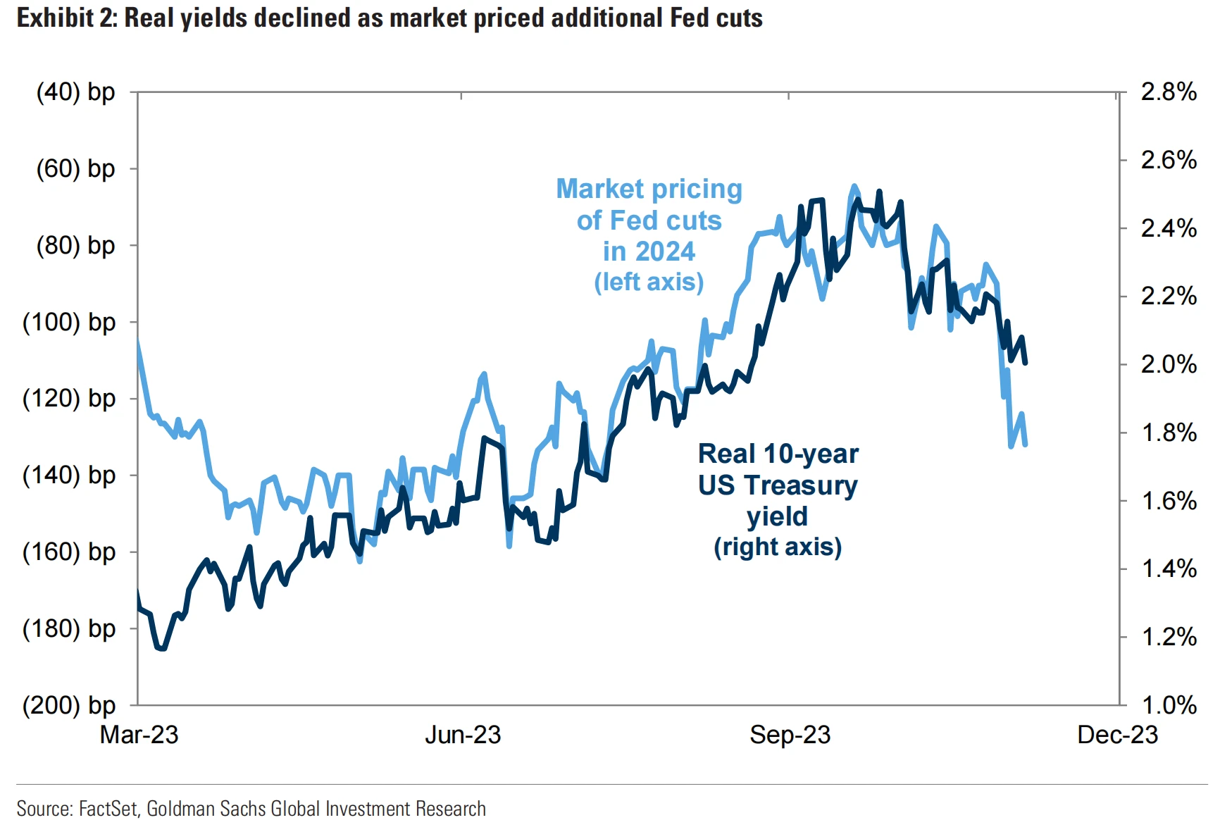 市场已经料到 2024 年 130 个基点的美联储降息,高于高盛经济学家的预期。银行业策略师认为市场难以再对降息进行更乐观定价。