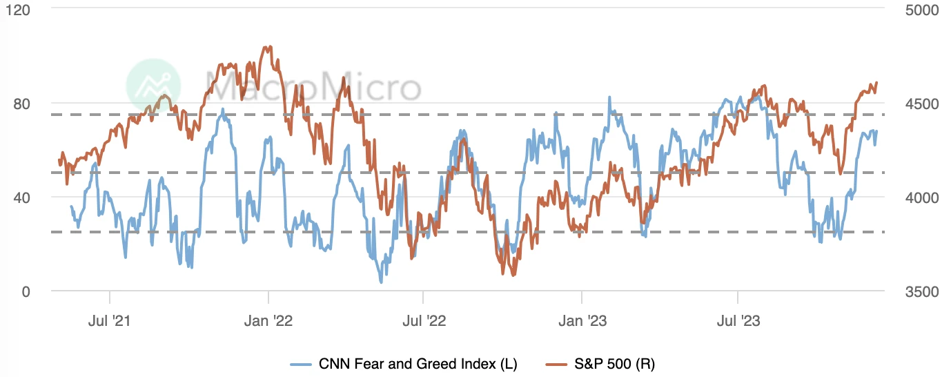 CNN 恐惧贪婪指数维持在 8 月初来高位上周几无变化: