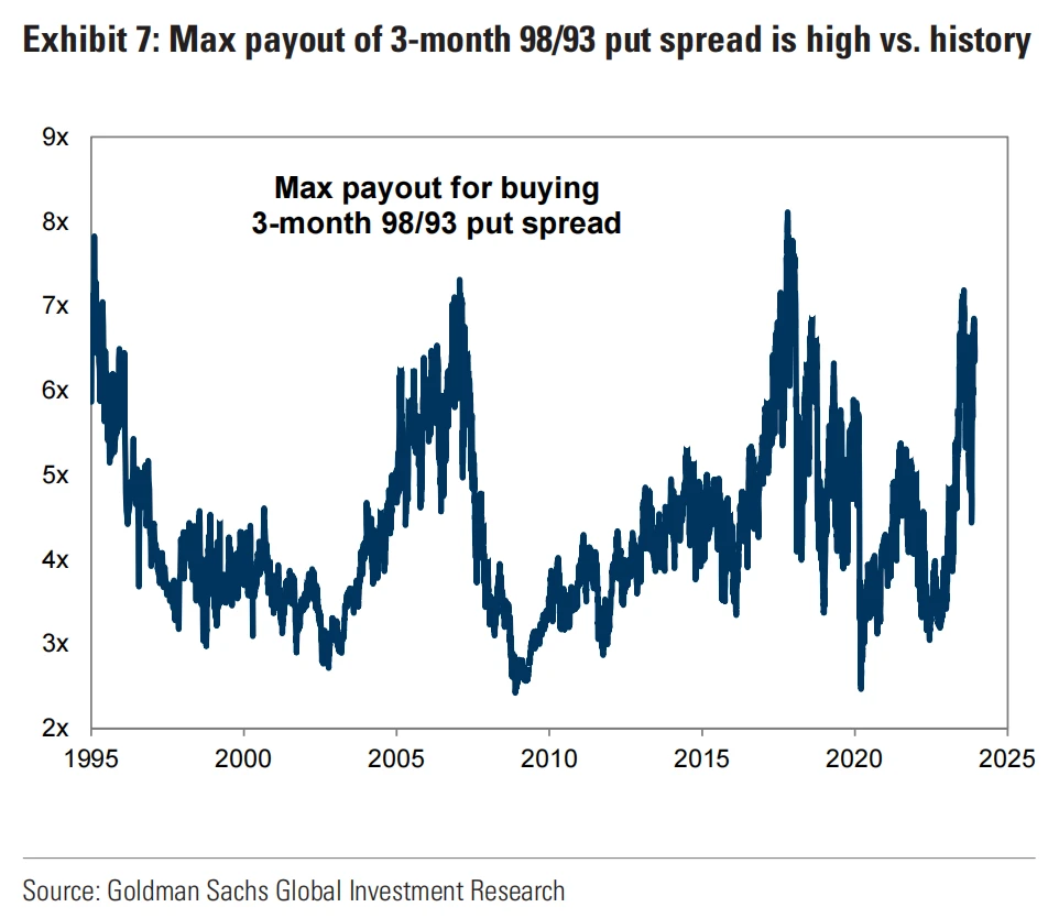 综上,考虑到乐观情景可能已在当前股价中反映出来,GS 建议投资者可能需要购买下行保护,比如通过构建看跌期权价差: