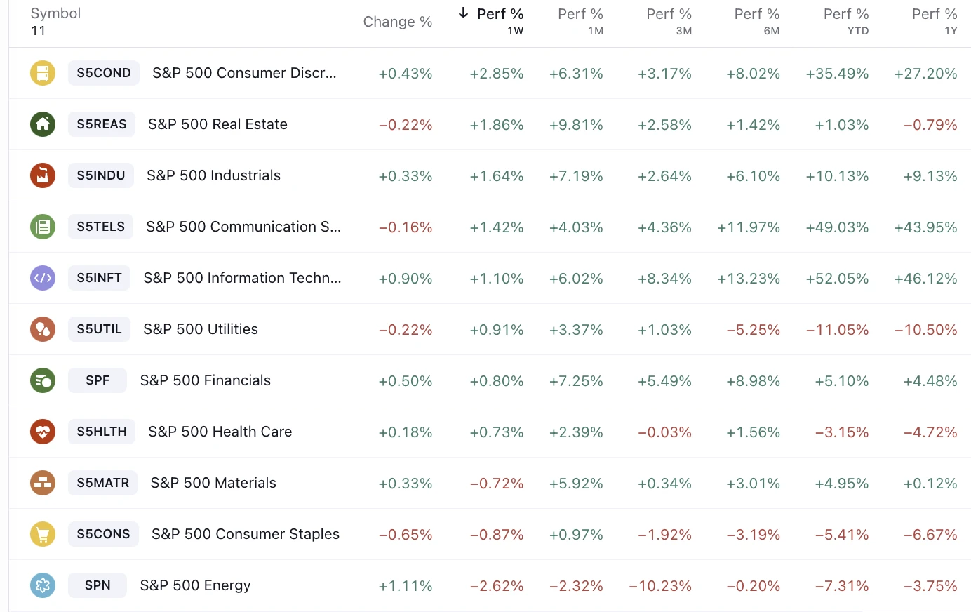 上周表现最好的依旧是贷款依赖度高也就是利率敏感行业,可选消费和房地产: