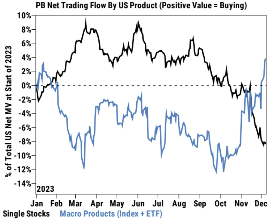 高盛 PrimeBook 数据,对冲基金(HF)四个星期以来首次净买入美国股票,主要是宏观产品。然而,个股连续第五周出现净抛售,尽管而散户在积极买入。短线交易继续增加。大部分投资者观望状态,面对下周 CPI 数据及美联储会议不愿大规模交易。但一些长线投资者开始小规模买入科技板块。
