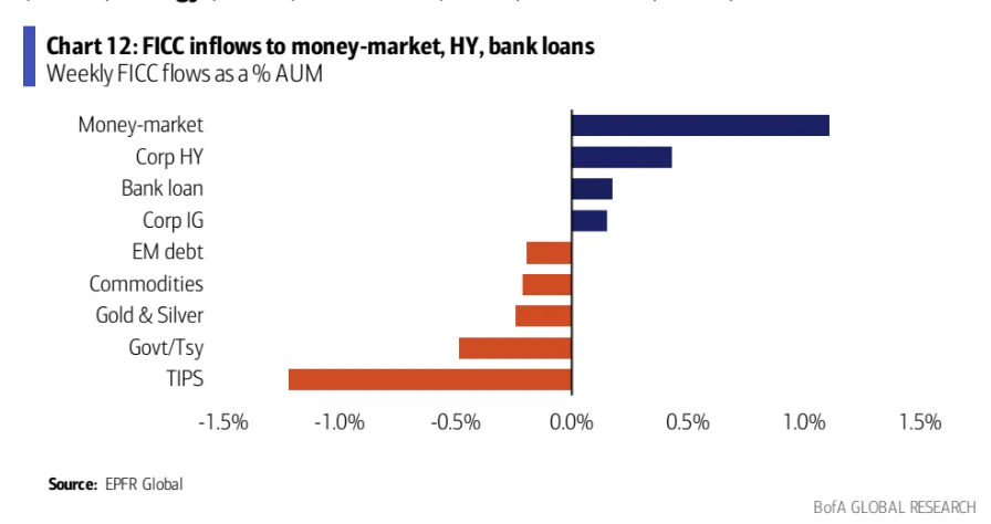 过去一周股票和高收益债券维持资金流入,但投资级债券和政府债券出现大规模资金外流。这表明投资者正从较安全的资产转向更具投机性质的资产。