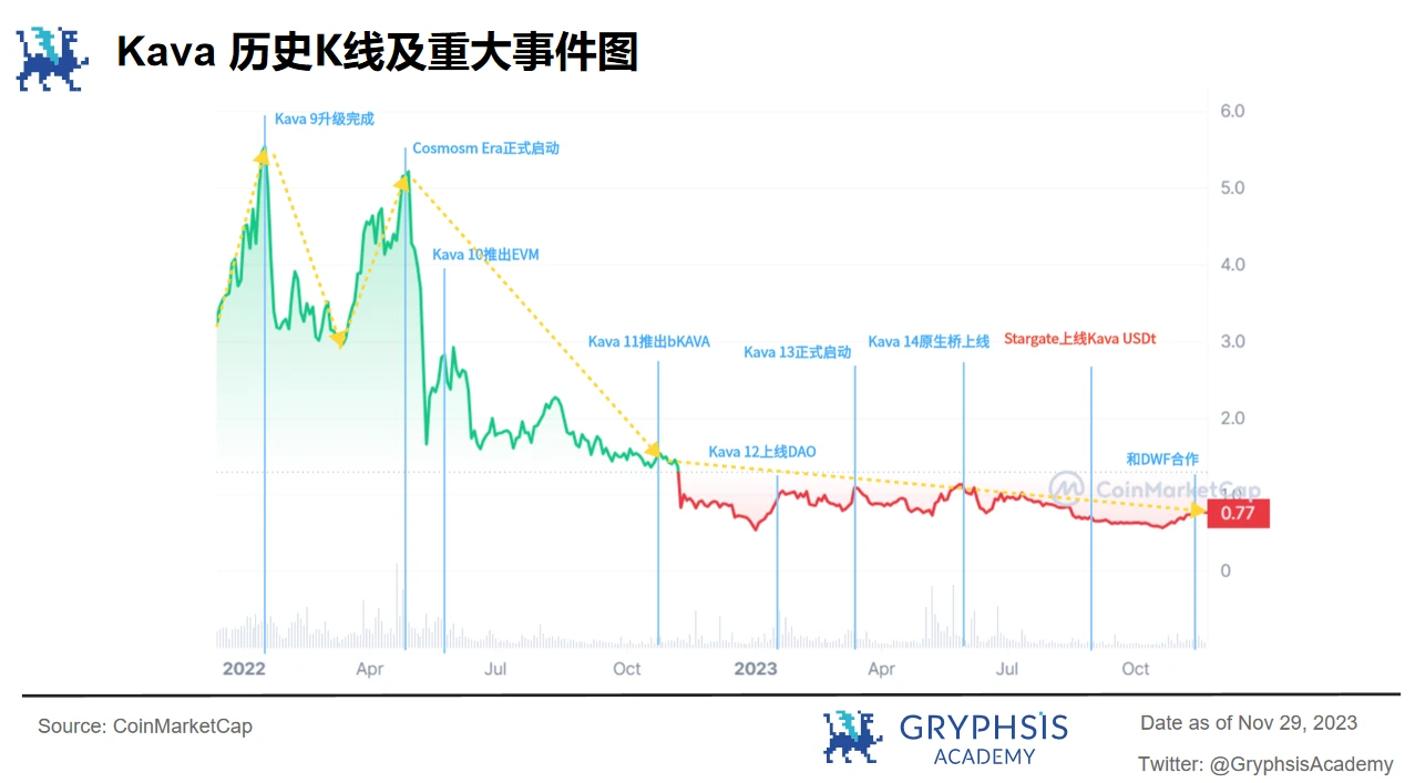 我们简单梳理了一下 Kava 的历史事件以及对应 K 线图: