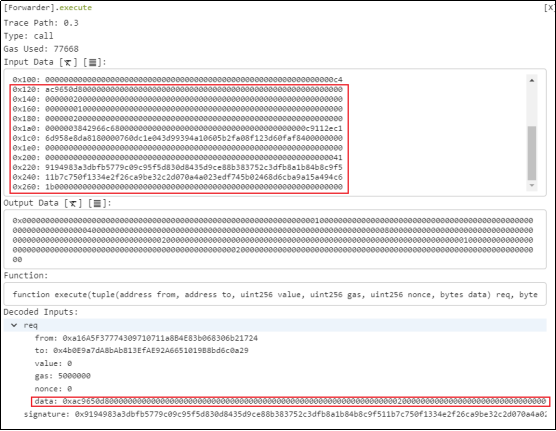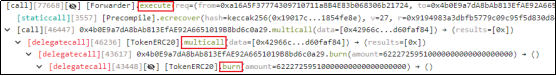 4.对于经过精心构造的 calldata,攻击者调用了 [Forwarder].execute 函数,并传入相关参数。
