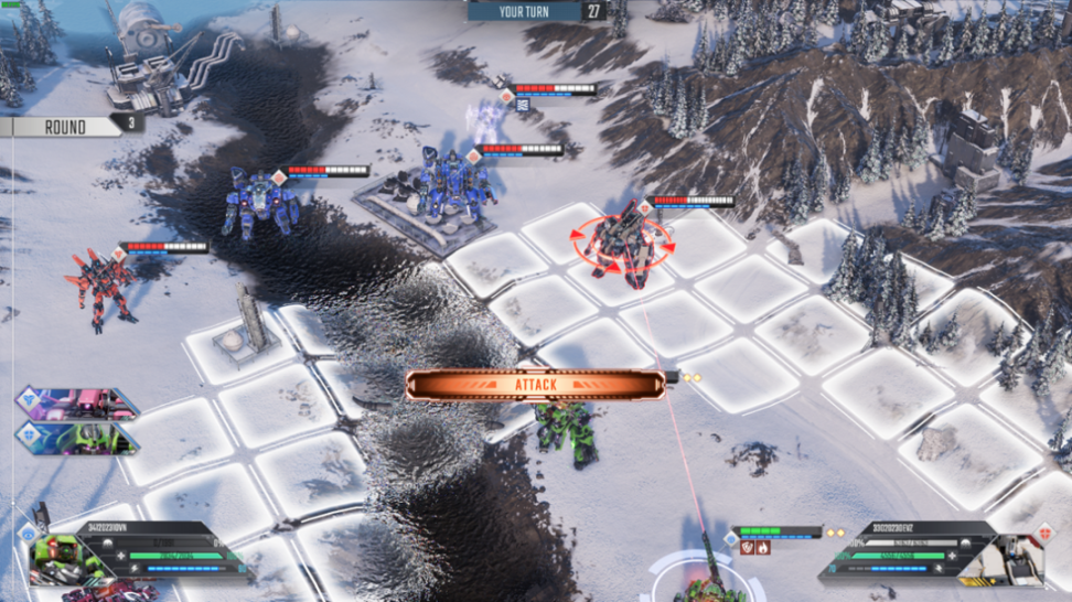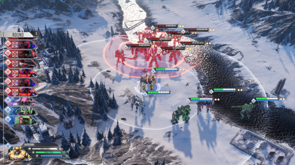 战斗模式是对战双方每方各上场 5 台机甲,在不同的地图中进行回合制战斗,将敌方的所有机甲消灭即可获得胜利。 笔者目前分别在雪地和沙漠两张地图中进行了游戏体验。