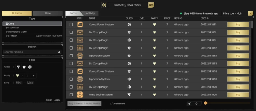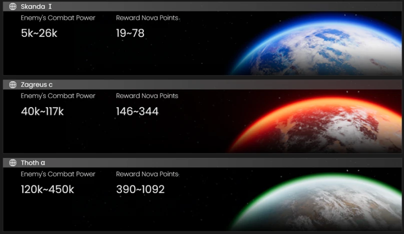 除此之外,网页游戏《远征》(Expedition)也包含在了 Endurance 之上,玩家可以通过派遣机甲进行不同难度的远征来获得相应的 Nova Points,Nova Points 是拍卖行的指定货币。