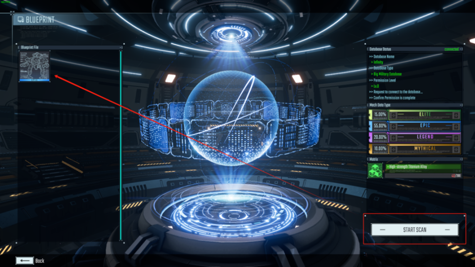 扫描蓝图是游戏中获取新机甲的主要方式。