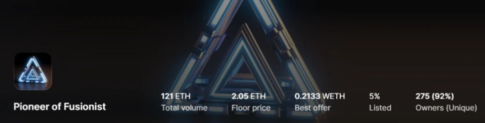 Pioneer 是 Fusionist Beta 测试的参与证明,目前地板价为 2.05 $ETH。