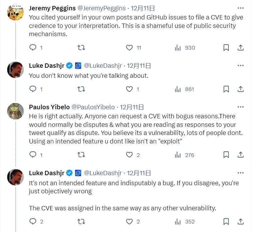 目前,加密社区对铭文「漏洞」一事依然争论不休,这次引入 NVD 采纳认证无疑再次激化了双方矛盾。 站在开发人员的角度来看,系统中产生漏洞,并对其修复是再正常不过的现象,无论此漏洞处于何种重要程度。但对于利用此漏洞的铭文生态来说, 特别是众多利益相关者, 这无疑是在「断人财路」。