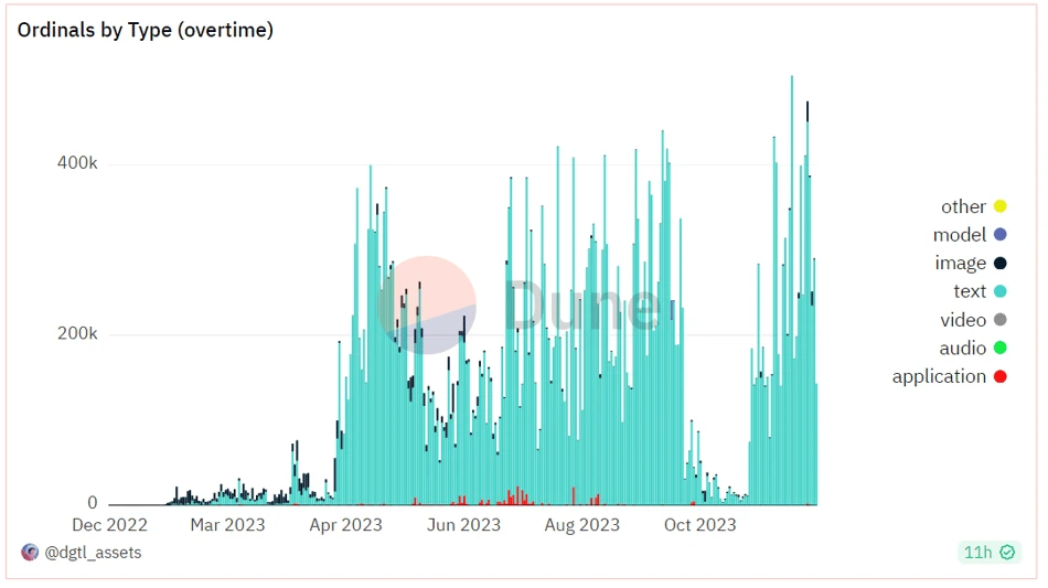Ordinals 铭文铸造数量,图片来源:Dune @dgtl_asserts