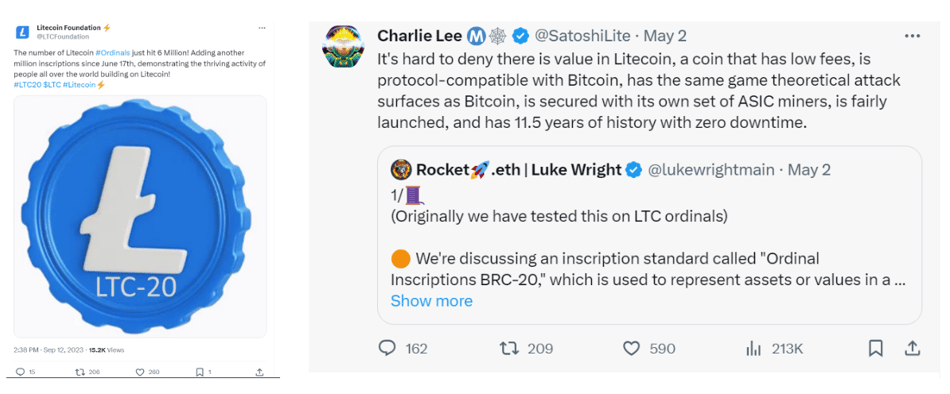 LTC 20 协议同理,是莱特币链上基于 Ordinals 的协议。该协议获得莱特币官方以及创始人李启威的转推和关注,可以说是「出身名门」,交易市场 Unilit、Litescribe ;钱包 Litescribe 的开发完成度也较高,且目前第一个代币 $Lite 已上线 Gate 交易所。