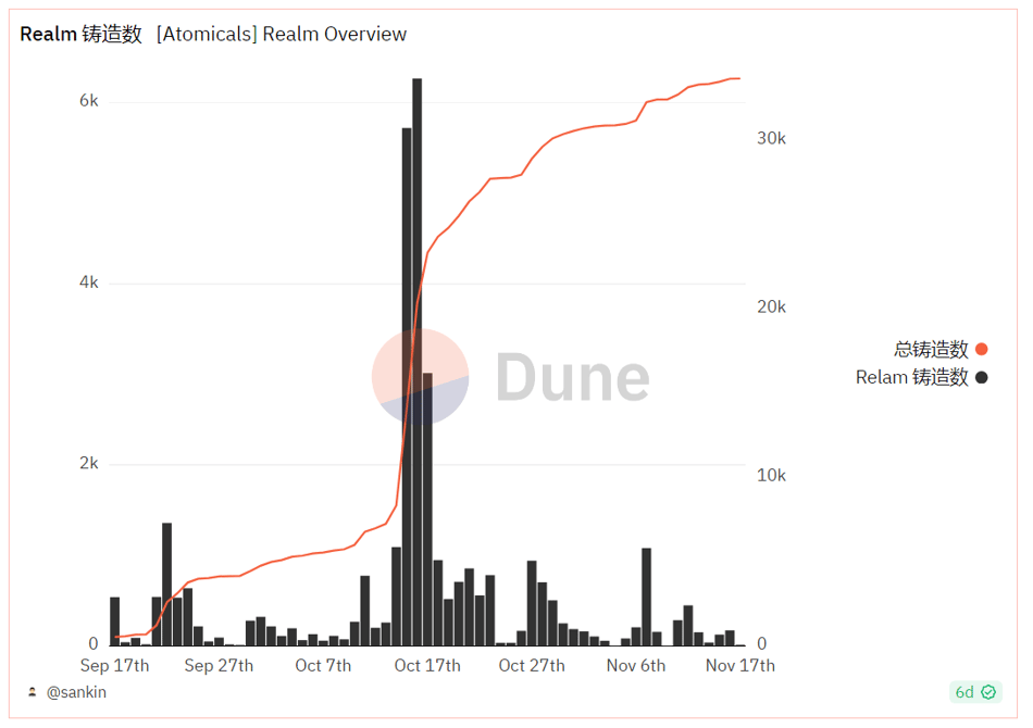 从 Inscriptions 的铸造数据来看,铸造数量趋于稳定,保持在较高的数量。