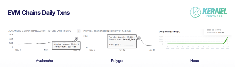 EVM 链每日交易笔数,图片来源:Kernel Ventures