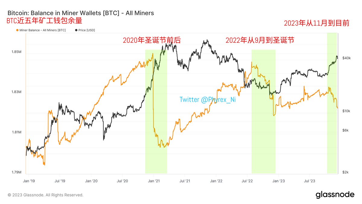 矿工最近五年共进行三次较大抛售,发生周期包括2023年11月迄今