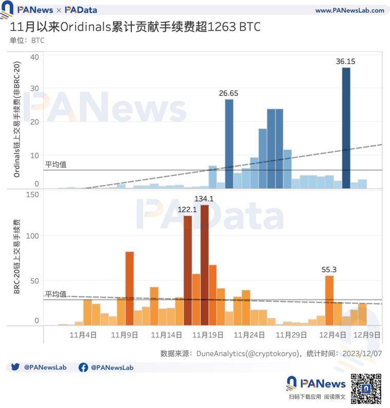 数读比特币Ordinals:贡献23%交易手续费,热门BRC20平均涨超400%