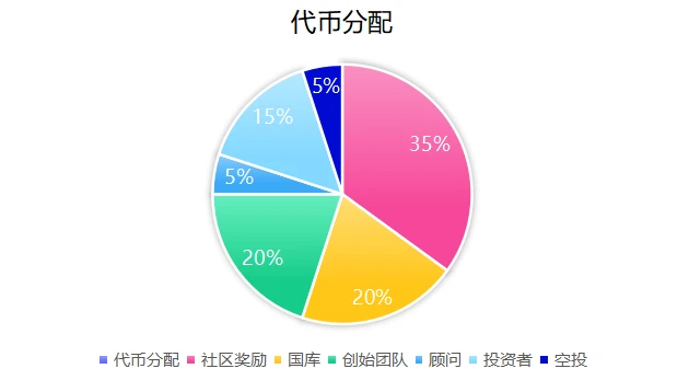 代币分配:代币总供应量暂未公布。社区奖励占比 35% 、国库占比 20% 、创始人和团队占比 20% 、顾问占比 5% 、 投资者占比 15% 、空投占比 5% 。