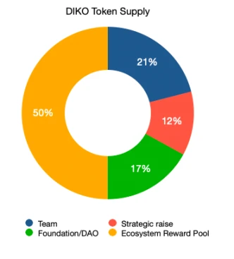 治理代币 DIKO:DIKO 代币用于协议的治理,持有者可以参与决策过程,并通过为流动性池子添加资产来获得 DIKO。