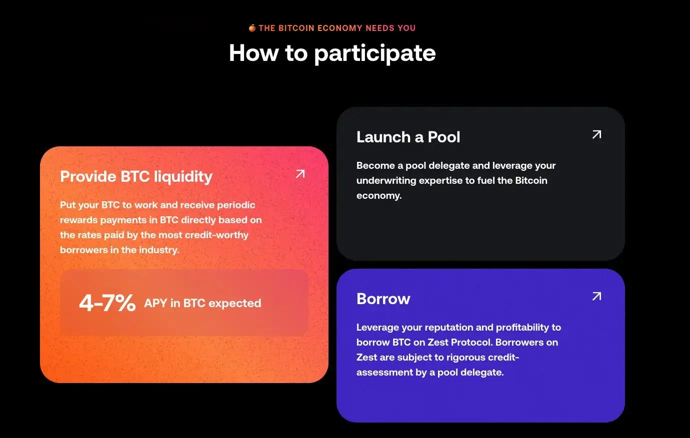 Zest Protocol 是一个基于比特币的去中心化借贷平台,专注于解决比特币经济中的一个关键问题:比特币的利用不足。通常大量的比特币被闲置在冷库中,从而阻碍经济增长。Zest Protocol 作为一个建立在比特币区块链上的链上开源借贷平台,通过智能合约来增加透明度和可审计性,提供了一个解决方案。