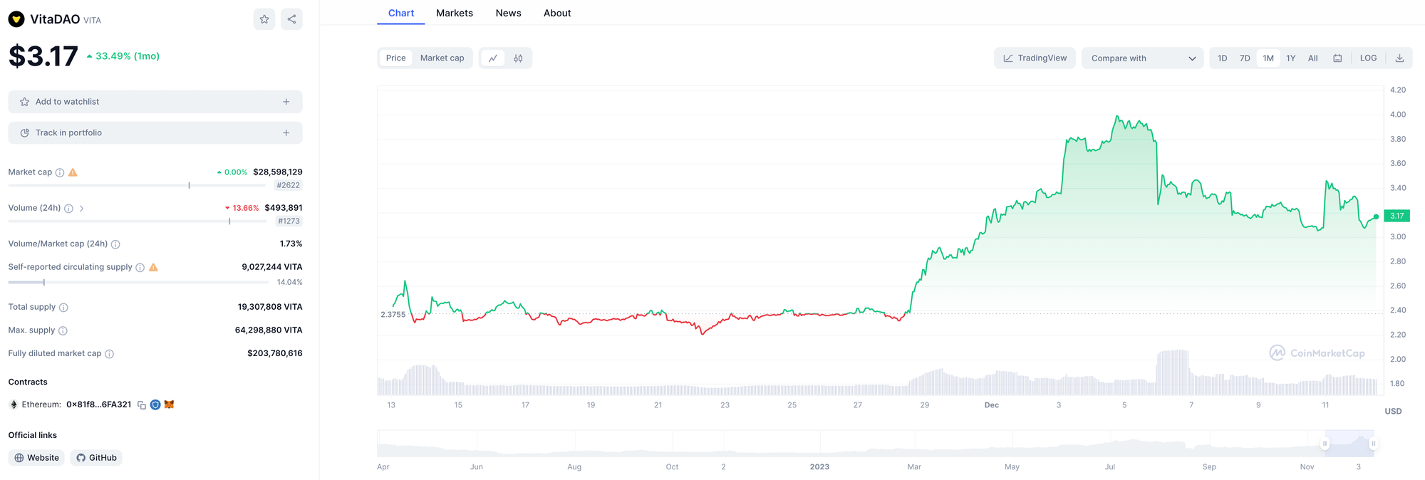 代币持有者的投票权:$VITA 代币持有者参与 VitaDAO 的决策过程,包括项目资助的选择、资金管理和治理活动。