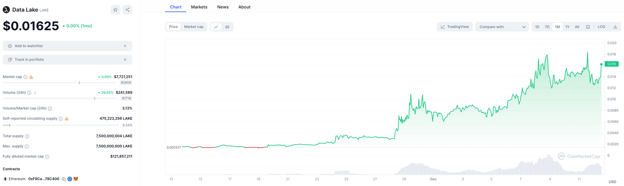 Data Lake 是一个利用区块链技术构建的创新医疗数据捐赠平台,旨在支持医学研究和人工智能的发展。它通过 Polygon 和自身的代币系统($LAKE)建立了一个桥梁,连接愿意捐赠医疗数据的患者和需要这些数据的研究人员。这一平台的目标是促进疾病治疗方法和新疗法的发现,从而改善医疗保健服务和患者的治疗效果。