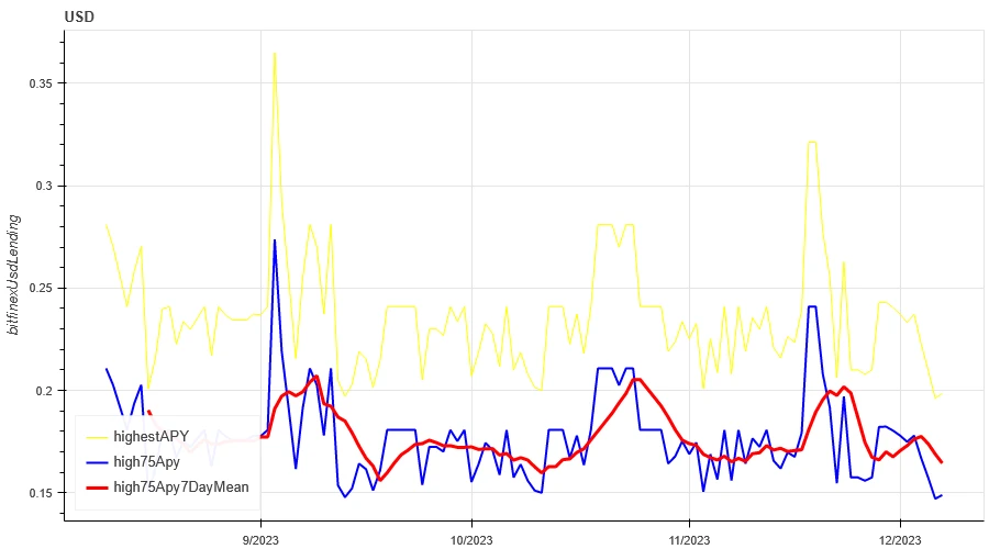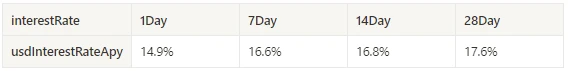 过去一周 USD 放贷年化收益平均为 16.6% ,利率微跌。