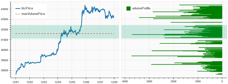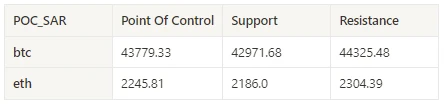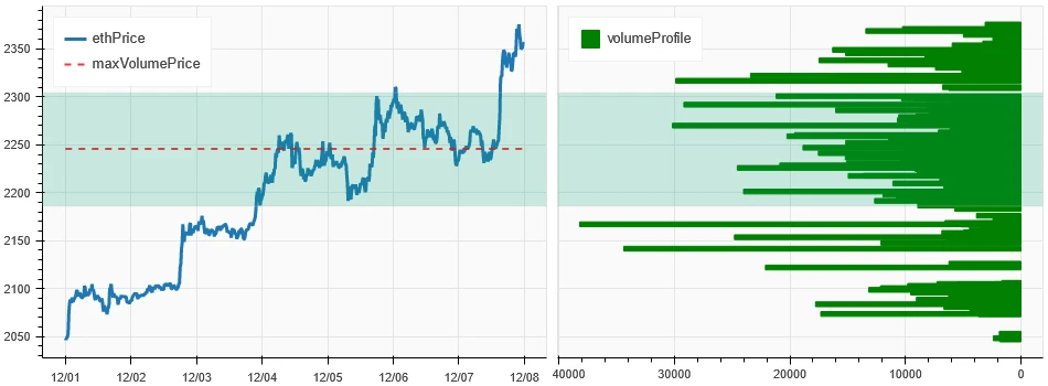 表格显示 BTC 与 ETH 过去一周中每周的密集成交区间