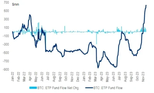 Bitcoin ETP inflows have soared in recent month as anticipation of a spot ETF has grown.