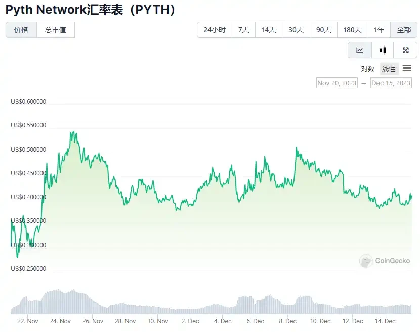 作为主攻 Solana 生态的预言机项目,伴随追溯性空投和「 FTX 后裔」Backpack 的激励性空投引发社区持续关注。上线后,币价相较其他空投性币种更为强势,但在 JTO 等新热点出现后逐渐冷却下来,近半个月跌幅达 18% 。
