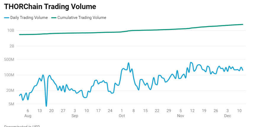 从交易量指标可以明显看出,该协议的底层技术正在被有效地用于链上交易。 THORChain 认可的贷款协议正在积极销毁 RUNE 的大部分供应。其借贷模式允许用户以多种抵押品选项借入 BTC 或 ETH,零利息且无需清算。然而,根据市场情况,这些贷款需要更高的最低抵押比率,从 200% 到 500% 不等。