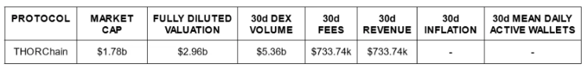 THORSwap (THOR:1.2954 亿美元 FDV) :该 DEX 聚合器提供一键在 10 条链和 5000 多种资产之间的代币交换,并向抵押其代币的用户分享 75% 的收入。该协议目前正根据交易量进行每月代币销毁,并最近达到了 10 亿美元的 TVL。