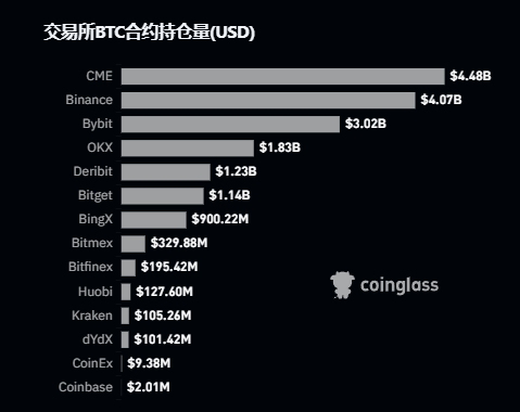BTC 永续合约资金费率 方面,HTX 上的 USD 合约资金费率最高,达到 0.0905% , dYdX 的 USD 合约费率最低,报-0.0010% 。 季度交割价格价格在 41000-43000 美元不等。 BTC 合约持仓量方面,CME 在继续排在持仓量第一,其持仓量为 44.8 亿美元;其次是币安,其持仓量为 40.7 亿美元; Bybit 则排名第三,持仓量为 30.2 亿美元。