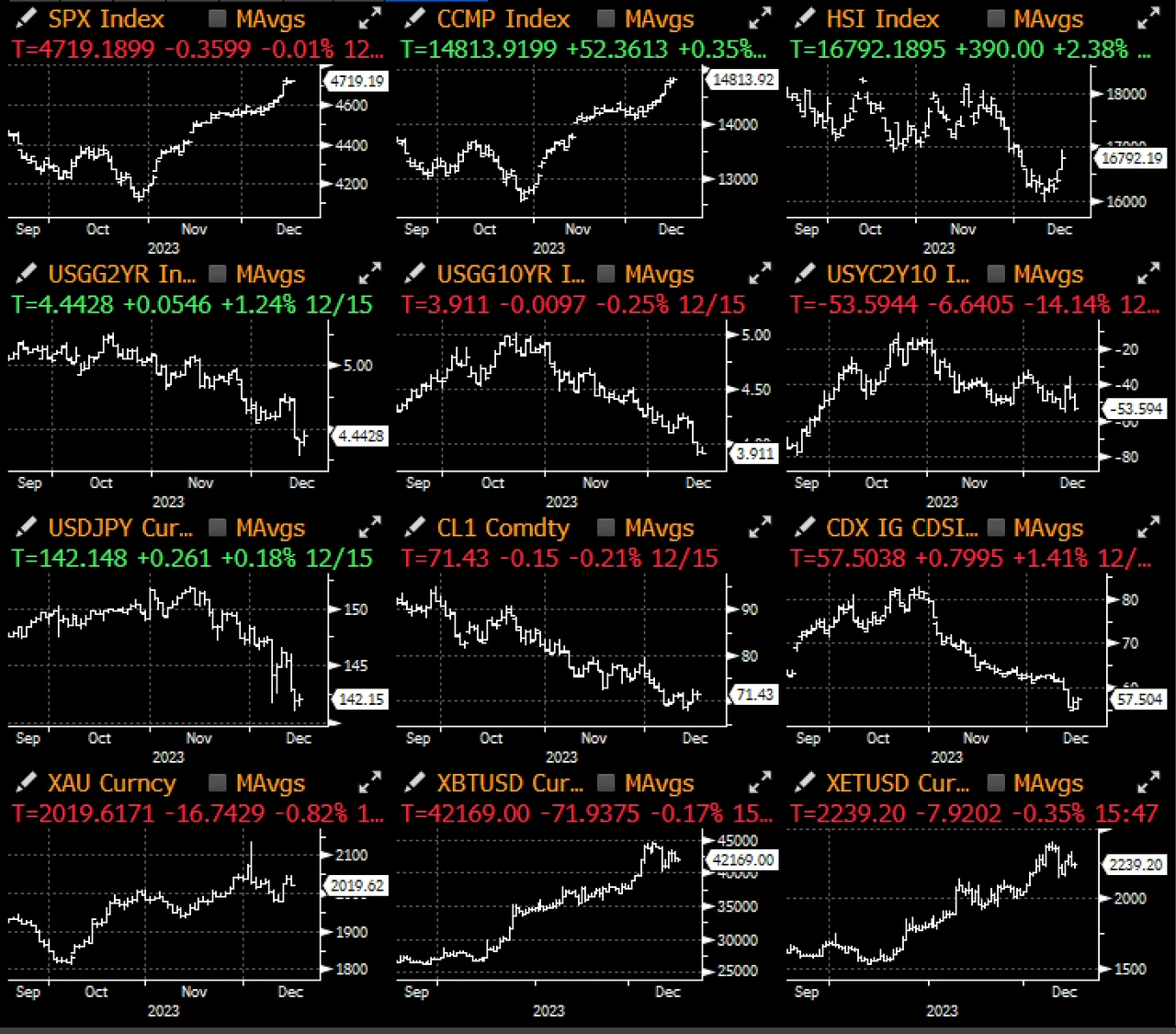 市场似乎已经迈入了今年的最终章,交易员开始逐渐减少交易量,跨资产波动率也开始下降,日本央行成为今年唯一剩下的“事件风险”,疲软的美国制造业数据(12 月纽约联储制造业指数 -23.6 点至 -14.5 点)进一步支持了美联储转向的论点,随著美联储在核心通胀依然远高于长期目标值的情况下抛开了谨慎,市场的 FOMO 情绪日益增强,即使是最坚定的空头,也不禁开始认为这是否是下一轮资产膨胀浪潮的开始。
