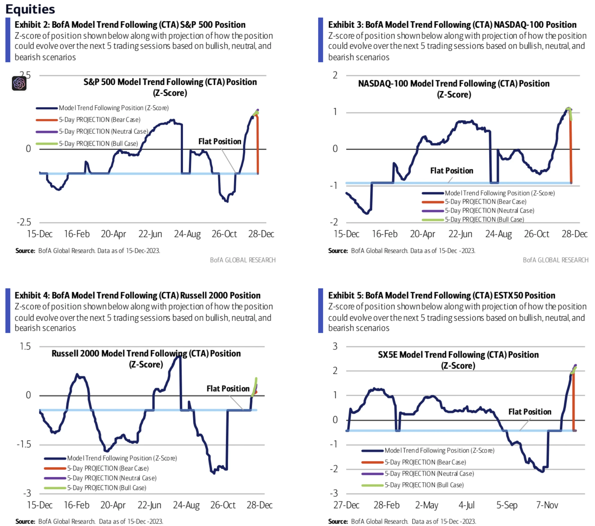 美银的量化追踪认为目前 CTA 资金对纳指和标普的多头头寸已经过度,进一步买盘受到限制,不过小盘股的动能仍在接下来一周有望受到支持: