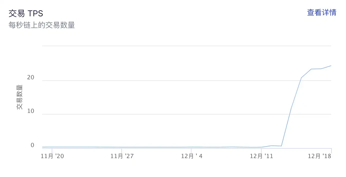 而另一条公链 Conflux 也经历了同样的压力测试,据 ConfluxScan 数据,受铭文活动热潮影响, 12 月 15 日,Conflux 单日交易笔数达 178.8 万笔,CFX 日交易笔数达 10 万笔,均创下年内新高;当日活跃账户数达 1.77 万。此外,Conflux 每日交易 TPS 自 2021 年 4 月上旬以来首次超过 20 。