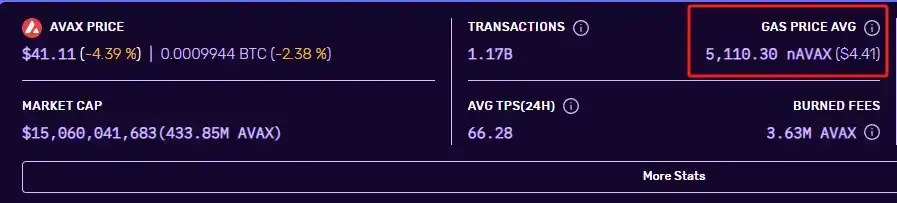Avalanche 网络交易费用;图源:Avascan